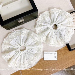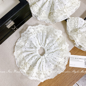 2025秋季新款超大裙摆大肠发圈波点蕾丝淑女风高级感珍珠发饰头饰