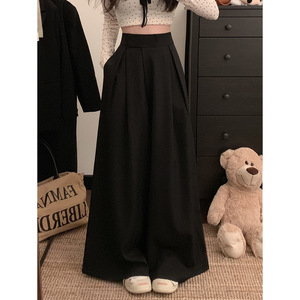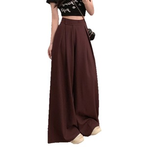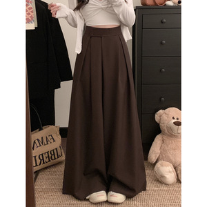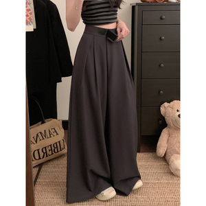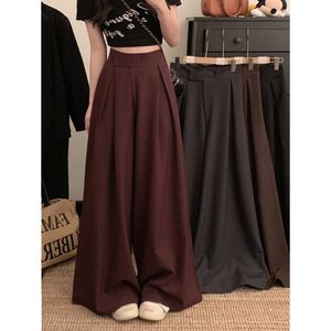 实拍!2025新款魔术贴阔腿裤女高腰垂感宽松休闲拖地西装裤子