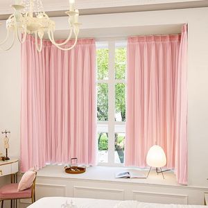 奶油风窗帘遮光双层布纱一体ins客厅卧室飘窗少女挂钩式奶茶新款