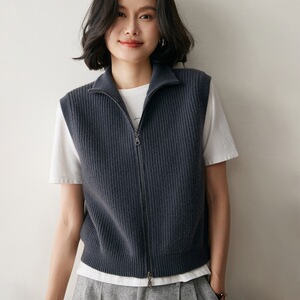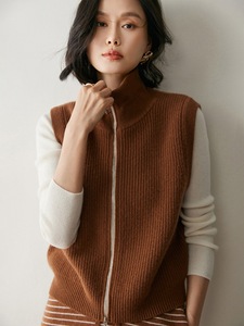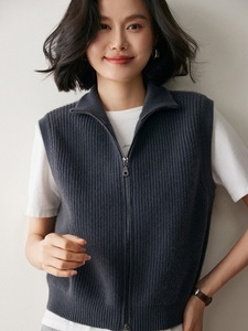 山羊绒立领坎肩针织马甲女2025秋季新款设计感简约拉链毛衣马夹潮