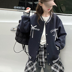 女童外套2025新款女孩秋装运动棒球服蝴蝶结棒球服外套休闲上衣服