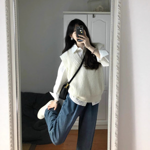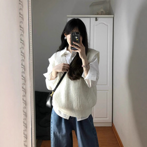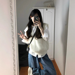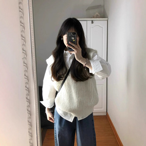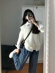 学院风白衬衣内搭衬衫两件套马甲2025秋季新款女叠穿针织毛衣背心