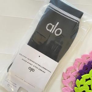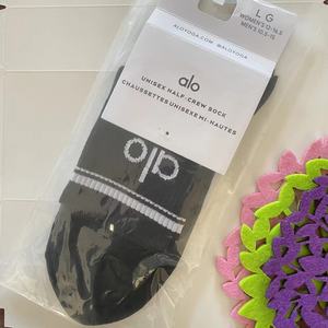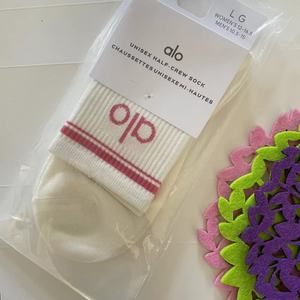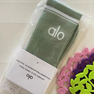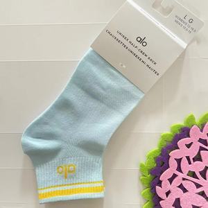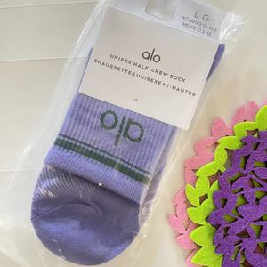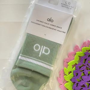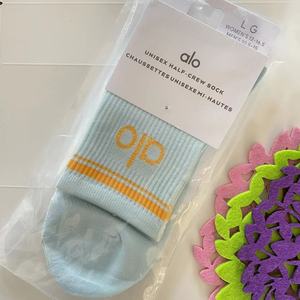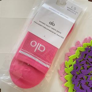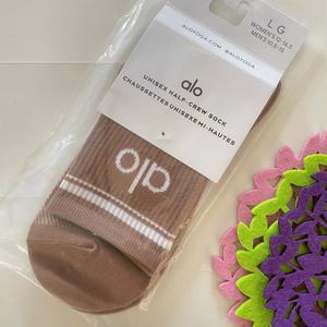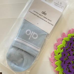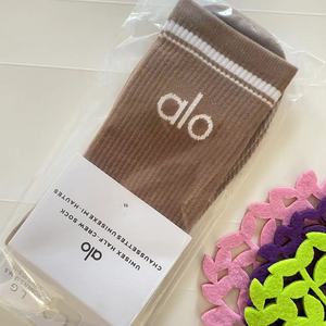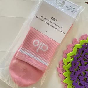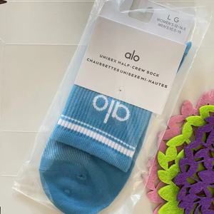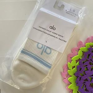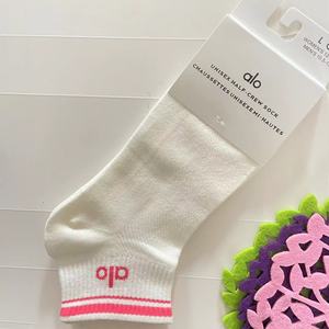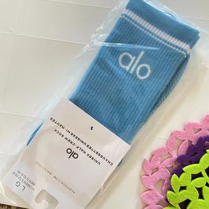 alo瑜伽运动袜子网眼棉学生袜字母双杠中长筒男女袜黑白灰情侣袜