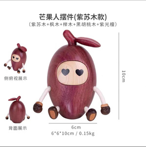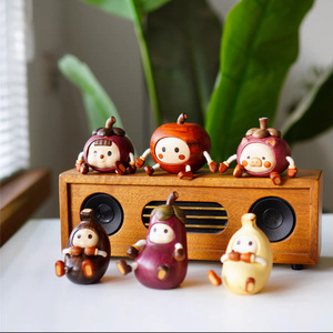 实木雕刻水果人系列手办玩偶小刺猬香蕉熊家居办公车载装饰礼物