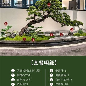 新中式仿真迎客松室内造景装饰景观罗汉松假松树绿植橱窗玄关角落