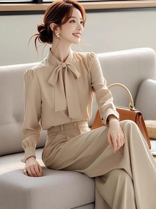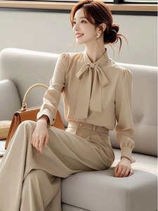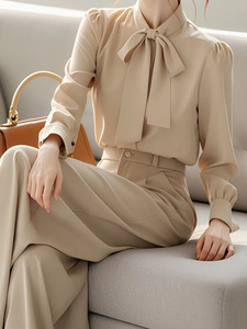 2025早秋穿搭高级感出席重要场合的小香风衬衫阔腿裤职业两件套装