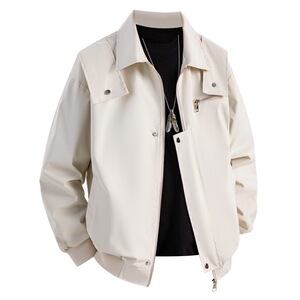美式高街外套男春秋季高级感男装痞帅翻领飞行员夹克翻领开衫外套