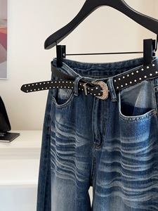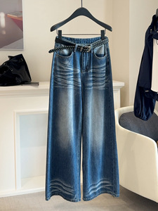 美式复古水洗磨白阔腿牛仔裤女2025秋新款高腰垂感宽松做旧长裤