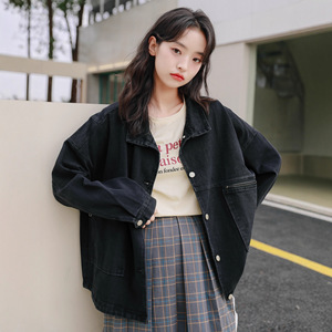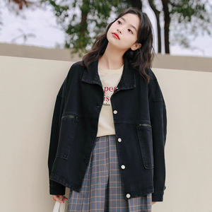复古港风情侣款工装黑色牛仔外套女2025秋冬新款个性拉链翻领夹克