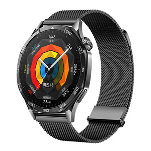 适用华为GT5/4手表带 watch5米兰尼斯不锈钢磁吸平头通用腕带钢带