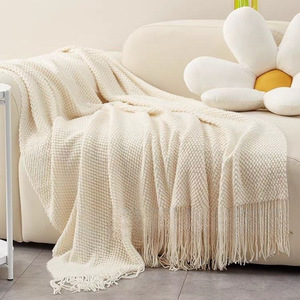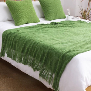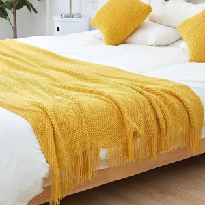 复古简约床尾巾ins民宿床旗盖酒店床上装饰网红轻奢提花流苏