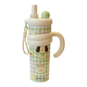 高颜值手柄卡通保温杯女生大容量双饮咖啡水杯便携办公茶隔冰霸杯