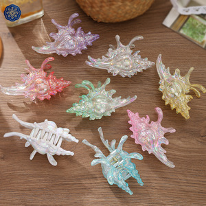 跨境热销3D炫彩海螺抓夹女高端度假风鲨鱼夹发饰可拆卸设计