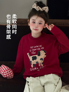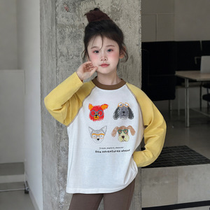 女童T恤2025秋季新款卡通插肩袖洋气上衣儿童亲子圆领长袖打底衫