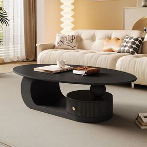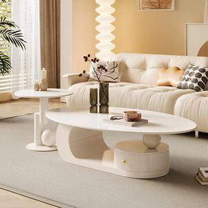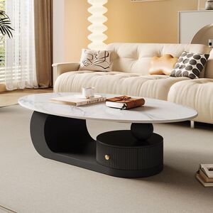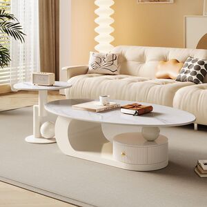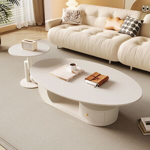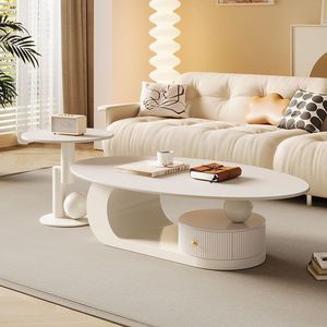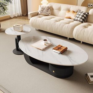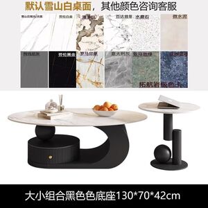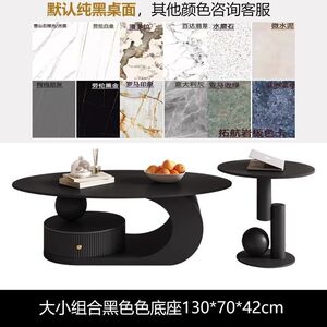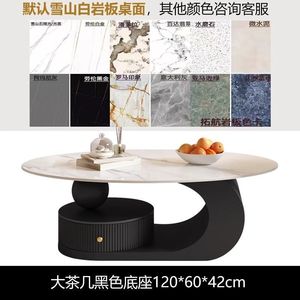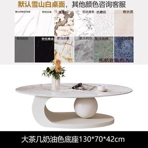 奶油风岩板椭圆形茶几客厅铁艺茶几小户型新款网红茶