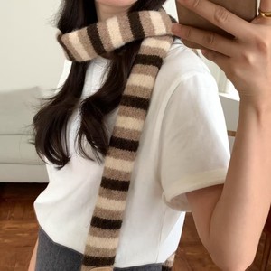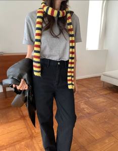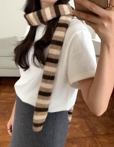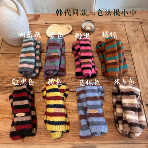 韩国细窄长款条纹含羊毛针织小围巾女秋冬设计感辣妹撞色装饰围脖