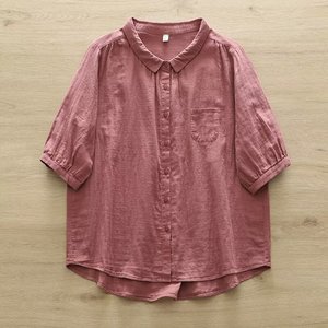 夏季双层棉纱碎花衬衫减龄大码中袖衬衣时尚减龄休闲上衣女装6541