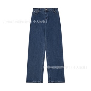 跨境高版本c家重磅微弹牛仔布直筒低腰宽松牛仔裤logo可拆卸裤边