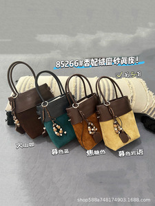 磨砂真皮手机包小挎包女高级感时尚精致手拎包麂皮绒斜挎包水桶包