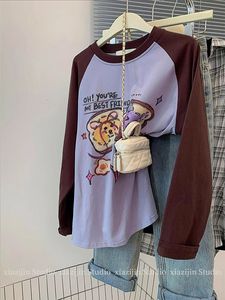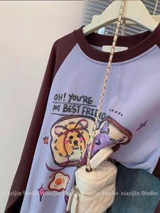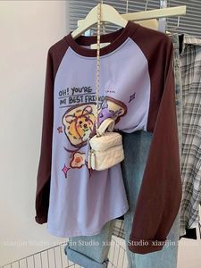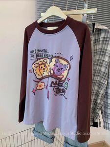 特大码240斤早秋涂鸦印花插肩长袖t恤女美式复古宽松设计感上衣潮