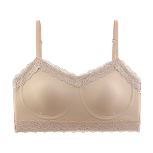 百搭蕾丝边粉底液内衣女薄款聚拢显小胸罩夏季抹胸背心小吊带文胸