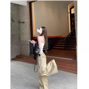 卡其色休闲2025新款女慵懒垂感小个子显瘦宽松时尚阔腿拖地裤夏秋