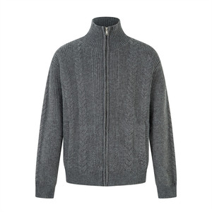 宽松立领拉链毛衣外衣男士秋冬欧美潮牌纯色扭麻花宽松休闲针织衫