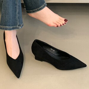2025新款晚晚法式绒面浅口小红鞋平底单鞋女复古简约温柔配裙子通