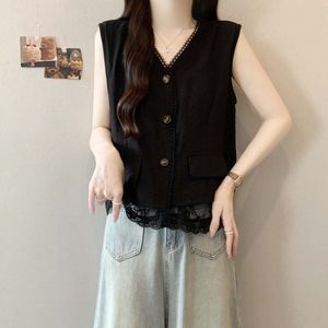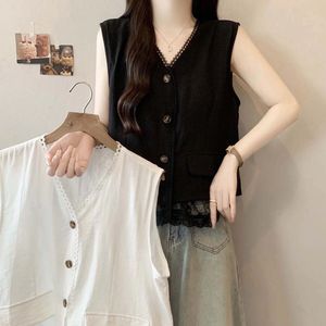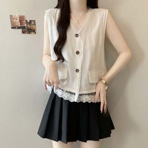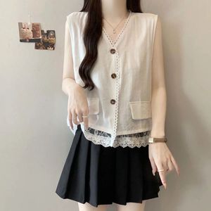 大码纽扣V领无袖衬衫女夏季新款胖mm宽松显瘦洋气减龄小衫上衣女