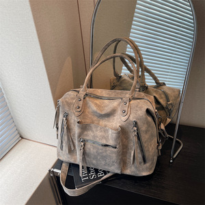 复古单肩斜挎包美式单肩托特包外贸休闲2025包女皮绒百搭早秋通勤