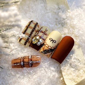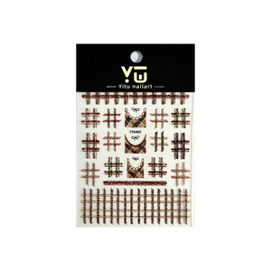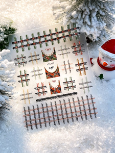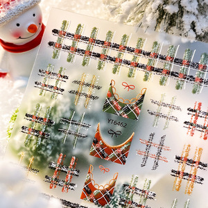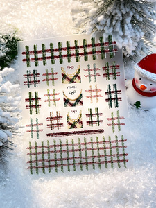 浮雕圣诞雪格纹美甲贴纸美拉德风蝴蝶结线条背胶指甲贴花装饰批发