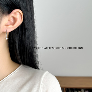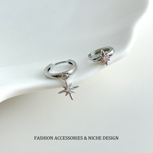 精致小巧不对称八芒星锆石耳坠耳环简约时尚百搭小众设计耳圈耳扣