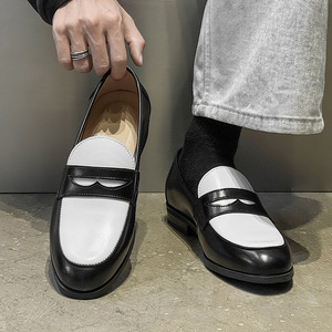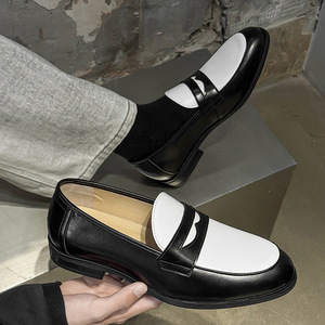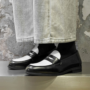 2025夏秋新款男士乐福鞋软底休闲一脚蹬拼色百搭鞋5905黑色-J