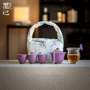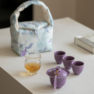 墨己茶事收纳包整套盖碗茶具套装旅行茶具户外便携装紫色茶具套装