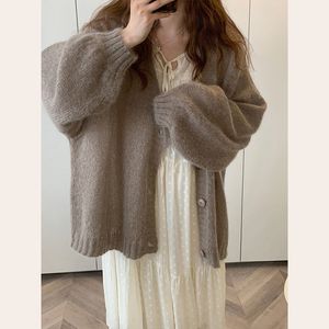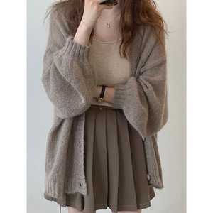 马海毛氛围感上衣软糯慵懒风咖色毛衣针织开衫女春秋外搭薄款外套