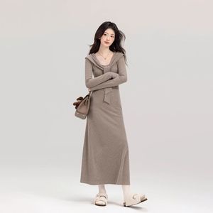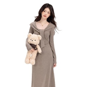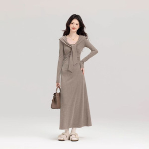 欧阳 早秋慵懒长裙修身女通勤收腰设计感连衣裙