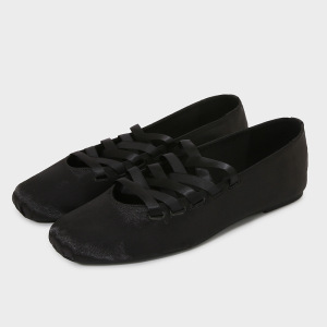 跨境专供女鞋秋季新品方头单鞋女黑色系带浅口绑带芭蕾休闲平底鞋