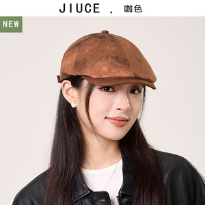2025年复古美式迷彩前进帽女新款百搭大头围显脸小扎染鸭舌帽子潮