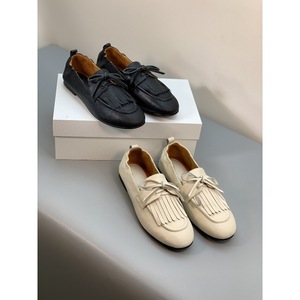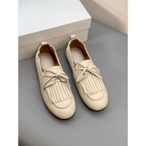 原单2025新款真皮流苏乐福鞋女英伦风小皮鞋平底单鞋一脚蹬豆豆鞋