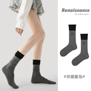 Renaissance秋冬新款中筒袜波点公主袜蝴蝶结百搭简约ins潮袜子女