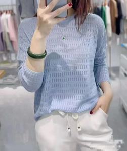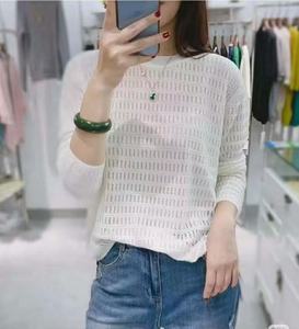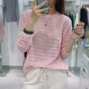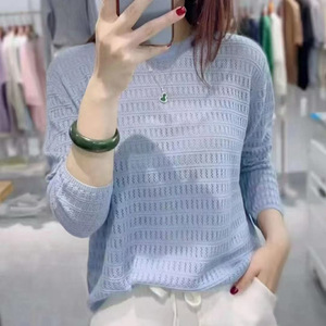 纯羊毛套头内搭打底女式圆领针织毛衣清新风冰淇淋色提花款上衣潮