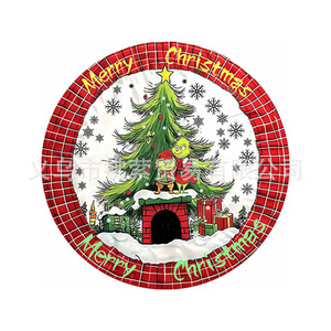 跨境圣诞节装饰用品90cm印刷卡通森林人圣诞树底围裙圣诞树裙
