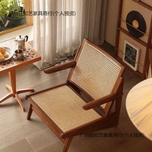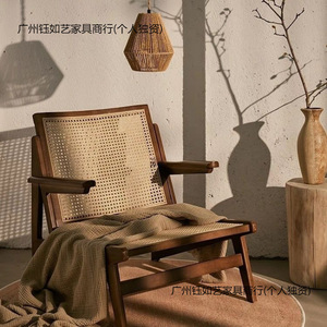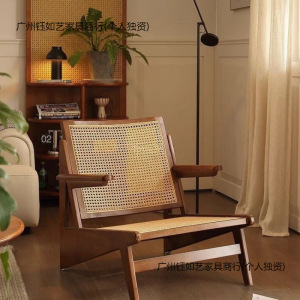 躺椅沙发椅实木藤椅中古侘寂复古单人民宿设计藤编昌迪加尔袋鼠椅