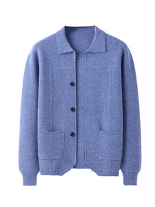 男士100纯羊毛针织开衫翻领纽扣毛衣宽松大码商务高端夹克外套潮