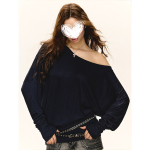 Moses魔西一字肩长袖T恤女秋新款修身显瘦内搭设计感小众露肩上衣