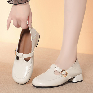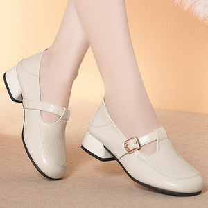 中老年妈妈鞋子软底舒适秋季女士皮鞋T字扣单鞋浅口女鞋一件代发