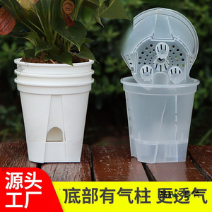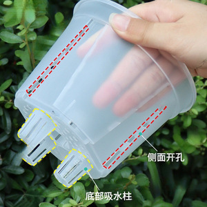 新款储水透明青山盆自吸水懒人盆控根盆朱顶红蝴蝶兰塑料花盆批发