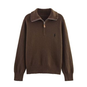跨境欧美速卖通爆款拉链翻领套头毛衣女秋冬季新款宽松百搭针织衫