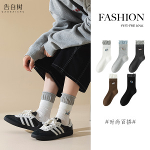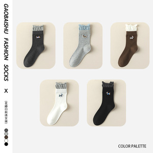 袜子女秋冬小狗卡通刺绣双罗口中筒袜子日系ins风堆堆袜诸暨袜子