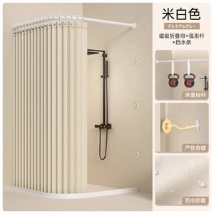 粘贴款:米色【弧形杆+帘+挡水条+双侧磁吸】